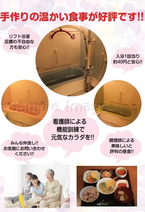 入浴 :完全個室浴槽・リフト浴室完備。毎回お湯を入替えし、一番風呂で清潔です。